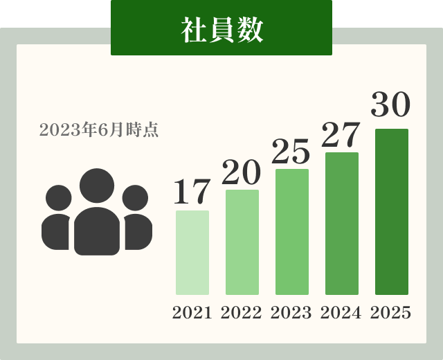 私たちは近江商人の”三方よし”の理念に基づき、社員の可能性を開き、社員同士が協力し高め合うことで、社会へ新たな価値を提供出来る組織を目指しています。